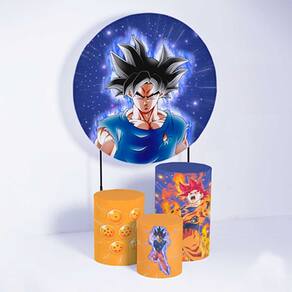 Kit Painel de Festa Redondo de 1,50m e Trio de Cilindros Dragon Ball - Fera Print - Cor: Kit Dragon Ball 1