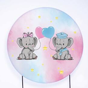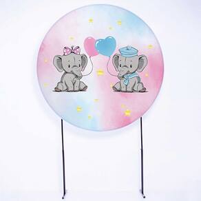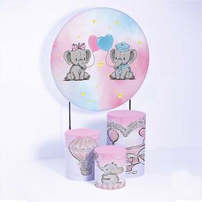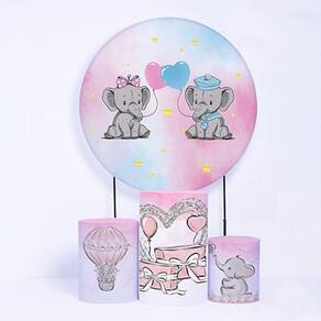 Kit Painel de Festa Redondo de 1,50m e Trio de Cilindros Elefantes - Fera Print - Cor: Elefante 7