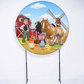 Kit Painel de Festa Redondo de 1,50m e Trio de Cilindros Fazenda do Zenon - Fera Print