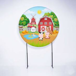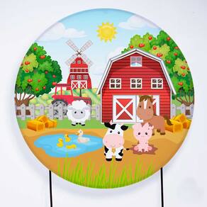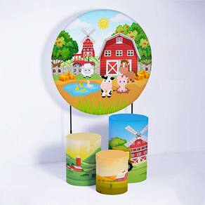 Kit Painel de Festa Redondo de 1,50m e Trio de Cilindros Fazendinha - Fera Print - Cor: Fazendinha 1