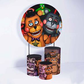 Kit Painel de Festa Redondo de 1,50m e Trio de Cilindros Five Nights - Fera Print