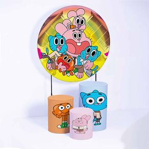 Kit Painel de Festa Redondo de 1,50m e Trio de Cilindros Gumball - Fera Print