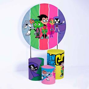 Kit Painel de Festa Redondo de 1,50m e Trio de Cilindros Jovens Titans - Fera Print