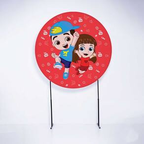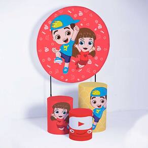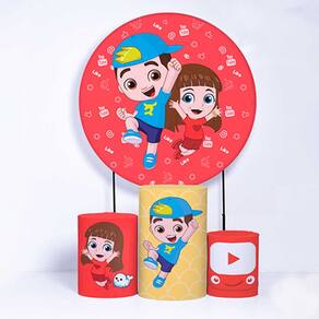 Kit Painel de Festa Redondo de 1,50m e Trio de Cilindros Lucas Neto - Fera Print - Cor: Kit Lucas Neto 1