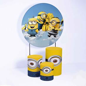 Kit Painel de Festa Redondo de 1,50m e Trio de Cilindros Minions - Fera Print - Cor: Minions 4