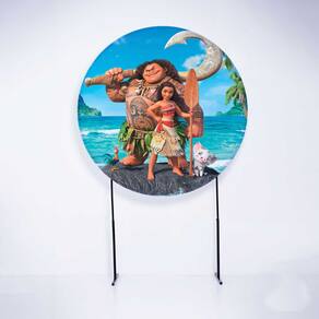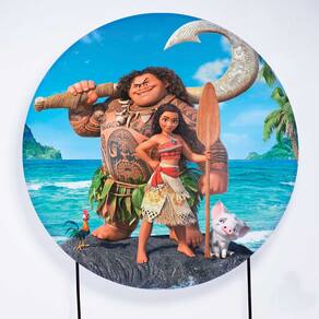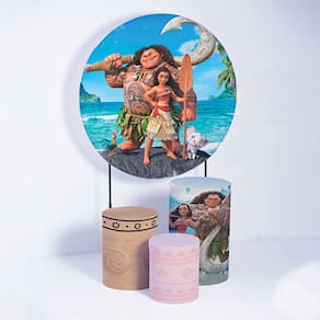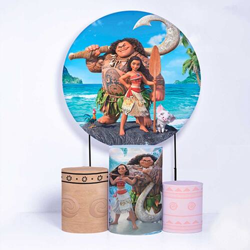 Kit Painel de Festa Redondo de 1,50m e Trio de Cilindros Moana - Fera Print - Cor: Moana 3