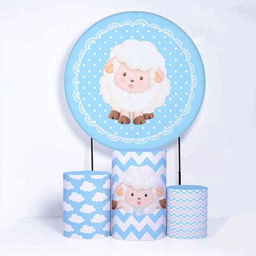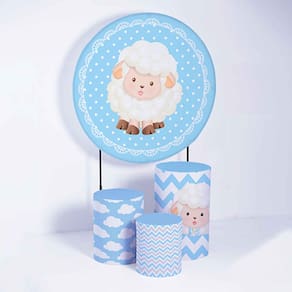 Kit Painel de Festa Redondo de 1,50m e Trio de Cilindros Ovelhas - Fera Print - Cor: Ovelhas 6