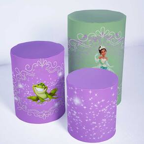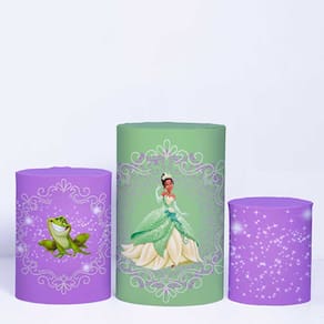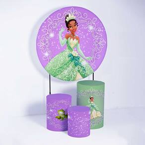Kit Painel de Festa Redondo de 1,50m e Trio de Cilindros Princesa Tiana - Fera Print