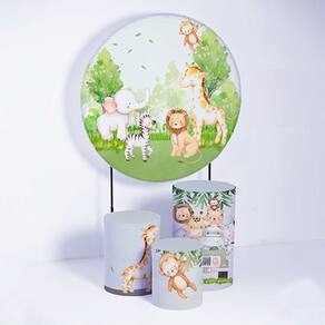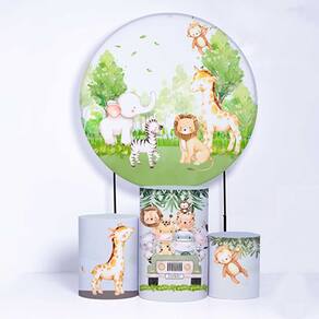Kit Painel de Festa Redondo de 1,50m e Trio de Cilindros Safari - Fera Print - Cor: Safari 3