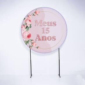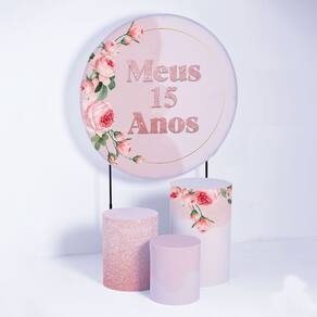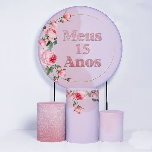 Kit Painel de Festa Redondo de 1,80m e Trio de Cilindros 15 Anos- Fera Print - Cor: Kit 15 anos 2