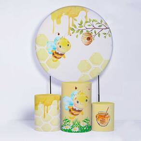 Kit Painel de Festa Redondo de 1,80m e Trio de Cilindros Abelhinha - Fera Print