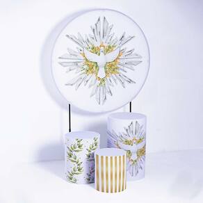 Kit Painel de Festa Redondo de 1,80m e Trio de Cilindros Batizado - Fera Print - Cor: Batizado 16