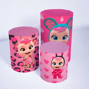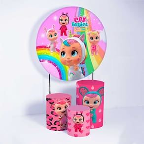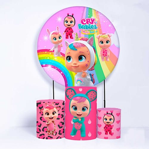 Kit Painel de Festa Redondo de 1,80m e Trio de Cilindros Cry Babies - Fera Print