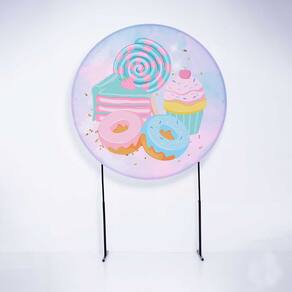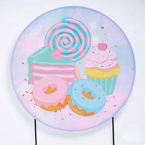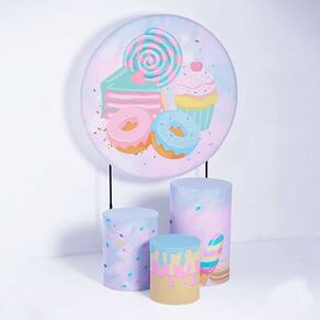 Kit Painel de Festa Redondo de 1,80m e Trio de Cilindros Doces - Fera Print - Cor: Doces 4