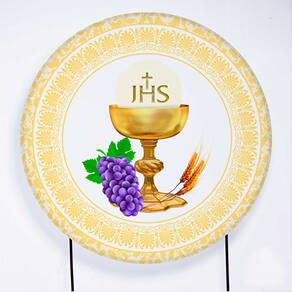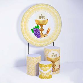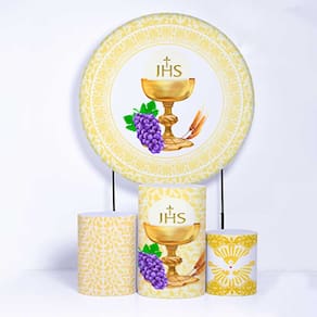 Kit Painel de Festa Redondo de 1,80m e Trio de Cilindros Eucaristia - Fera Print