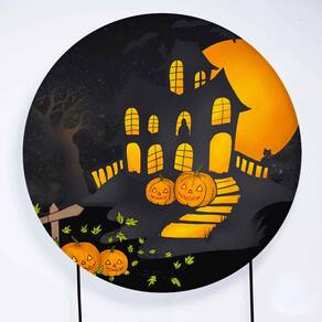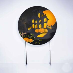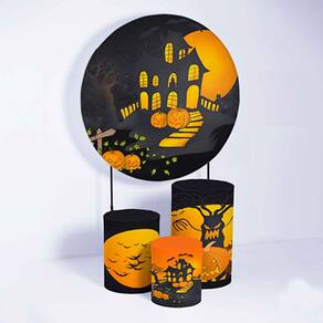 Kit Painel de Festa Redondo de 1,80m e Trio de Cilindros Halloween - Fera Print - Cor: Halloween 3