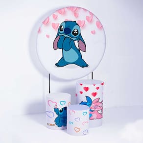 Kit Painel de Festa Redondo de 1,80m e Trio de Cilindros Lilo & Stitch - Fera Print - Cor: Kit Lilo 5