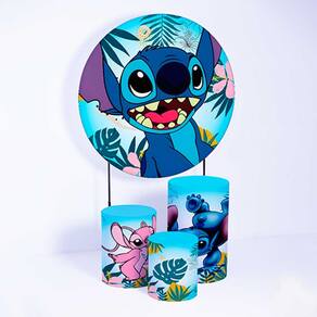 Kit Painel de Festa Redondo de 1,80m e Trio de Cilindros Lilo & Stitch - Fera Print - Cor: Kit Lilo 2