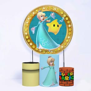 Kit Painel de Festa Redondo de 1,80m e Trio de Cilindros Mario Bros - Fera Print - Cor: Mario 10
