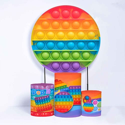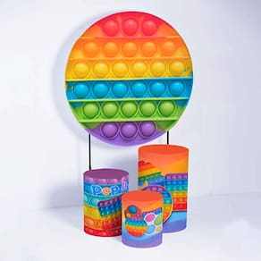 Kit Painel de Festa Redondo de 1,80m e Trio de Cilindros Popit - Fera Print - Cor: Popit 3
