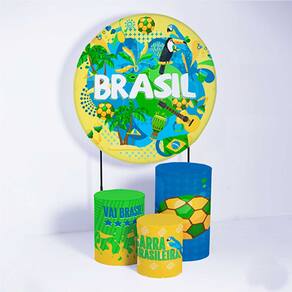 Kit Painel de Festa Redondo de 1,80m e Trio de Cilindros Seleção Brasileira - Fera Print - Cor: Seleção Brasileira 5