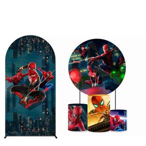 Kit Painel de Festa Redondo de 1,80m, Trio de Cilindros, Painel Lateral e Romano Homem Aranha - Fera Print - Cor: Homem Aranha 13