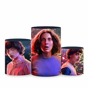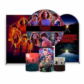 Kit Painel de Festa Redondo de 1,80m, Trio de Cilindros, Painel Lateral e Romano Stranger Things - Fera Print - Cor: Stranger Thinks 2