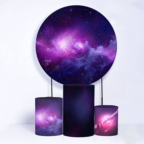 Kit Painel de Festa Redondo e Trio de Cilindros Astronauta - Fera Print - Cor: Kit Astronauta 6 | Medidas do Painel: Painel Redondo 1,80 metros