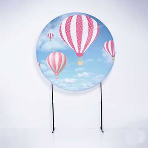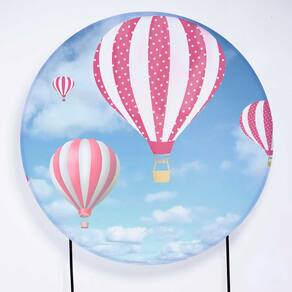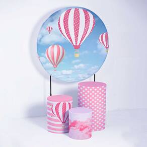 Kit Painel de Festa Redondo e Trio de Cilindros Balão Rosa - Fera Print - Medidas do Painel: Painel Redondo 1,50 metros