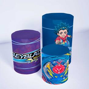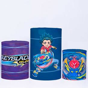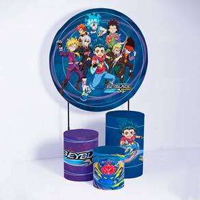 Kit Painel de Festa Redondo e Trio de Cilindros Beyblade - Fera Print - Medidas do Painel: Painel Redondo 1,30 metros