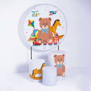 Kit Painel de Festa Redondo e Trio de Cilindros Brinquedos- Fera Print - Medidas do Painel: Painel Redondo 1,50 metros