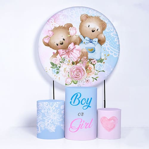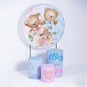 Kit Painel de Festa Redondo e Trio de Cilindros Chá Revelação- Fera Print - Cor: Kit Chá Revelação 3 | Medidas do Painel: Painel Redondo 1,50 metros