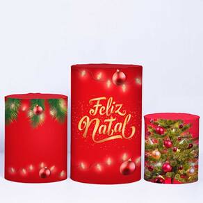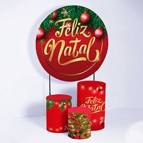 Kit Painel de Festa Redondo e Trio de Cilindros Natal - Fera Print - Cor: Kit Natal 4 | Medidas do Painel: Painel Redondo 1,80 metros