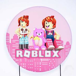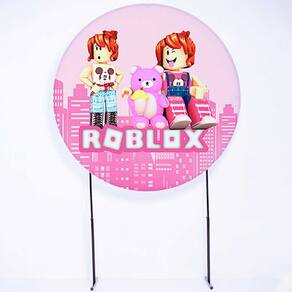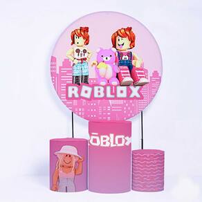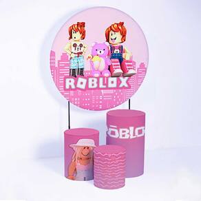 Kit Painel de Festa Redondo e Trio de Cilindros Roblox Feminino - Fera Print - Medidas do Painel: Painel Redondo 1,30 metros