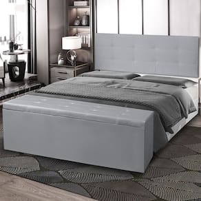 Confeccionados com material de alta qualidade, ambos os itens do kit apresentam acabamento em Corano, proporcionando um toque suave e agradável ao toque, além de serem resistentes e duráveis. A cabeceira painel serve como um elemento decorativo central, enquanto a calçadeira baú oferece uma solução prática para organizar roupas de cama, travesseiros e outros itens.