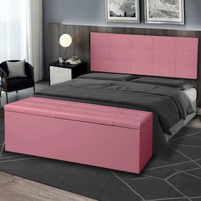 Kit Painel e Calçadeira Baú King 1,95m Roma Suede Rosa - Pallazio