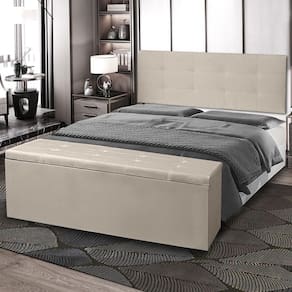 Confeccionados com material de alta qualidade, ambos os itens do kit apresentam acabamento em suede, proporcionando um toque suave e agradável ao toque, além de serem resistentes e duráveis. A cabeceira painel serve como um elemento decorativo central, enquanto a calçadeira baú oferece uma solução prática para organizar roupas de cama, travesseiros e outros itens.