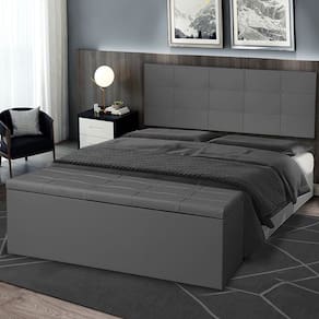 Confeccionados com material de alta qualidade, ambos os itens do kit apresentam acabamento em suede, proporcionando um toque suave e agradável ao toque, além de serem resistentes e duráveis. A cabeceira painel serve como um elemento decorativo central, enquanto a calçadeira baú oferece uma solução prática para organizar roupas de cama, travesseiros e outros itens.