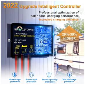 Ampla aplicação Pode ser como carregador de bateria solar e mantenedor para diferentes baterias de 12V DC, como Wet, Gel, MF, EFB e AGM. Uma variedade de cenários para RV, carro, barco, marinho, campista, cortador de grama, motocicleta, jet ski, bomba dágua, galpão, abridor de portão, etc.