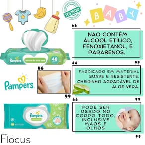 Kit Pampers Baby Glicerina Lenço Umedecido Aroma Aloe Vera Bem vindo a a loja Flocus. É um prazer tê-lo a como nosso a cliente CONTEÚDO DO KIT: 1 Shampoo Pampers Glicerina - 200ml 1 Condicionador Pampers Glicerina - 200ml 1 Sabonete Líquido para o Corpo Pampers Glicerina - 200ml 1 Lenço Umedecido Pampers Aroma de Aloe Vera 48 unidades Pampers Glicerina proporciona limpeza suave e segura do cabelo delicado de bebês e crianças. Ideal para todos os tipos de cabelo do bebê. O kit de Glicerina Pampers traz uma fórmula hipoalergênica pensada para o cuidado especial do cabelo delicado dos bebês e segura até para couro cabeludo sensível, trazendo maior suavidade e mantendo os fios macios. Além disso, proporciona uma lavagem suave e sem irritações nos olhos, evitando o desconforto das lágrimas durante o banho. Conta com pH ideal para o couro cabeludo do bebê e perfumação suave e segura para recém-nascidos. Não contém nenhum álcool etílico, fenoxietanol, parabenos e corantes. Fórmula biodegradável, vegana e livre de crueldade animal, com 97% de ingredientes naturais. Testado, aprovado e recomendado por pediatras e dermatologistas. Sabonete líquido infantil. Pampers Glicerina oferece limpeza suave da cabeça aos pés, para cuidar da pele delicada dos bebês. O Sabonete Líquido Pampers Glicerina foi criado pensando em um banho suave e seguro. Sua fórmula com Glicerina e Óleo de Girassol confere maior suavidade e mantém a pele do bebê macia. Com fórmula hipoalergênica, o sabonete da Pampers é seguro até para pele sensível e pode ser desde os primeiros dias. Conta com pH ideal para a pele do bebê e perfumação suave, segura para recém-nascidos. Os Lenços Umedecidos Pampers com Cheirinho De Aloe Vera que foram criados para aquela limpeza prática do dia a dia, porque além de serem suaves e resistentes, hidratam e refrescam a pele do seu bebê sem causar irritações, e podem ser em bumbuns, mão e rosto. Seu bebê limpinho e sem pele irritada com Pampers BENEFÍCIOS: Limpeza completa da cabeça aos pés; Sem álcool, fenoxietanol, parabenos e corantes; Testado e aprovado por pediatras e dermatologistas; Seguro até para couro cabeludo sensível; Hipoalergênico e seguro desde os primeiros dias; 98% de ingredientes naturais; Fórmula vegana e livre de crueldade animal; Mais suavidade e mantém a pele do neném macia; Hipoalergênico; Sem lágrimas. MODO DE USAR: Shampoo: Coloque um pouco do shampoo em uma das mãos e espalhe pelo cabelinho molhado do bebê durante o banho. Massageie suavemente e enxágue em seguida com água. Condicionador: Coloque um pouco do condicionador ao longo dos fios e espalhe pelo cabelinho molhado do seu bebê durante o banho. Desembarace com facilidade deixando agir por alguns minutos. Enxágue bem em seguida com água. Sabonete líquido: Coloque um pouco do sabonete líquido em uma das mãos. Espalhe por todo o corpinho e cabelinhos molhados do seu bebê durante o banho. Massageie suavemente. Enxágue em seguida com água. Lenço umedecido: Para abrir a embalagem, levantar a etiqueta no local indicado. Retire uma toalhinha umedecida e use nas áreas que deseja limpar. OBS: Não jogue no vaso. Jogue a toalhinha umedecida Utilizado no lixo. OBS 2:Manter a embalagem bem fechada para conservar a qualidade do produto. Orientações ao Consumidor: Agradecemos por escolher a Loja Flocus e por confiar em nós para cuidar da beleza dos seus cabelos. Em caso de dúvidas, favor enviar sua pergunta Flocus Marca: Não Informado