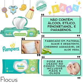 Kit Pampers Bepantol Baby Creme Assaduras Lenços Umedecidos Bem vindo a a loja Flocus. É um prazer tê-lo a como nosso a cliente CONTEÚDO DO KIT: 1 Shampoo Pampers Glicerina - 200ml 1 Condicionador Pampers Glicerina - 200ml 1 Sabonete Líquido para o Corpo Pampers Glicerina - 200ml 1 Creme Preventivo de Assaduras Bepantol Baby - 120g 2 pac. Lenços Umedecidos Pampers Aroma de Aloe Vera 96 unidades cada Pampers Glicerina proporciona limpeza suave e segura do cabelo delicado de bebês e crianças. Ideal para todos os tipos de cabelo do bebê. O kit de Glicerina Pampers traz uma fórmula hipoalergênica pensada para o cuidado especial do cabelo delicado dos bebês e segura até para couro cabeludo sensível, trazendo maior suavidade e mantendo os fios macios. Além disso, proporciona uma lavagem suave e sem irritações nos olhos, evitando o desconforto das lágrimas durante o banho. Conta com pH ideal para o couro cabeludo do bebê e perfumação suave e segura para recém-nascidos. O Sabonete Líquido Pampers Glicerina foi criado pensando em um banho suave e seguro. Sua fórmula com Glicerina e Óleo de Girassol confere maior suavidade e mantém a pele do bebê macia. Com fórmula hipoalergênica, o sabonete da Pampers é seguro até para pele sensível e pode ser desde os primeiros dias. Conta com pH ideal para a pele do bebê e perfumação suave, segura para recém-nascidos. Os Lenços Umedecidos Pampers com Cheirinho De Aloe Vera que foram criados para aquela limpeza prática do dia a dia, porque além de serem suaves e resistentes, hidratam e refrescam a pele do seu bebê sem causar irritações, e podem ser em bumbuns, mão e rosto. Seu bebê limpinho e sem pele irritada com Pampers Incluímos nesse kit baby o Creme Antiassaduras Bepantol Baby que vai além dos antiassaduras comuns. Com sua fórmula exclusiva, livre de conservantes, forma uma barreira transparente que deixa a pele delicada do seu bebê respirar, mantendo-a sempre saudável. Possui Lanolina, que forma uma barreira protetora transparente no bumbum, e Pró-Vitamina B5, que penetra na pele do bebê deixando-a mais resistente contra assaduras. Além disso, Bepantol Baby é livre de perfumes, corantes e parabenos que podem sensibilizar a pele delicada do bebê. BENEFÍCIOS: Limpeza completa da cabeça aos pés; Sem álcool, fenoxietanol, parabenos e corantes; Testado e aprovado por pediatras e dermatologistas; Seguro até para couro cabeludo sensível; Hipoalergênico e seguro desde os primeiros dias; 98% de ingredientes naturais; Fórmula vegana e livre de crueldade animal; Mais suavidade e mantém a pele do neném macia; Hipoalergênico; Sem lágrimas. Bepantol Baby: protege a pele das assaduras, além de mantê-la resistente, macia e hidratada. MODO DE USAR: Shampoo: Coloque um pouco do shampoo em uma das mãos e espalhe pelo cabelinho molhado do bebê durante o banho. Massageie suavemente e enxágue em seguida com água. Condicionador: Coloque um pouco do condicionador ao longo dos fios e espalhe pelo cabelinho molhado do seu bebê durante o banho. Desembarace com facilidade deixando agir por alguns minutos. Enxágue bem em seguida com água. Sabonete líquido: Coloque um pouco do sabonete líquido em uma das mãos. Espalhe por todo o corpinho e cabelinhos molhados do seu bebê durante o banho. Massageie suavemente. Enxágue em seguida com água. Lenço umedecido: Para abrir a embalagem, levantar a etiqueta no local indicado. Retire uma toalhinha umedecida e use nas áreas que deseja limpar. OBS: Não jogue no vaso. Jogue a toalhinha umedecida Utilizado no lixo. OBS 2:Manter a embalagem bem fechada para conservar a qualidade do produto. Bepantol Baby: Aplique uma camada de Bepantol Baby em toda a troca de fralda. Agradecemos por escolher a Loja Flocus e por confiar em nós para cuidar da beleza dos seus cabelos. Em caso de dúvidas, favor enviar sua pergunta Flocus