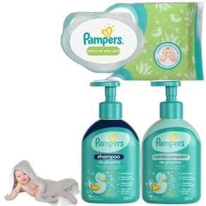 Kit Pampers Shampoo Condicionador Lenço Umedecidos Glicerina Bem vindo a a loja Flocus. É um prazer tê-lo a como nosso a cliente CONTEÚDO DO KIT: 1 Shampoo Pampers Glicerina - 200ml 1 Condicionador Pampers Glicerina - 200ml 1 pac. Lenço Umedecido Pampers Aroma de Aloe Vera 48 unidades Pampers Glicerina proporciona limpeza suave e segura do cabelo delicado de bebês e crianças. Ideal para todos os tipos de cabelo do bebê. O kit de Glicerina Pampers traz uma fórmula hipoalergênica pensada para o cuidado especial do cabelo delicado dos bebês e segura até para couro cabeludo sensível, trazendo maior suavidade e mantendo os fios macios. Além disso, proporciona uma lavagem suave e sem irritações nos olhos, evitando o desconforto das lágrimas durante o banho. Conta com pH ideal para o couro cabeludo do bebê e perfumação suave e segura para recém-nascidos. Não contém nenhum álcool etílico, fenoxietanol, parabenos e corantes. Fórmula biodegradável, vegana e livre de crueldade animal, com 97% de ingredientes naturais. Testado, aprovado e recomendado por pediatras e dermatologistas. Os Lenços Umedecidos Pampers com Cheirinho De Aloe Vera que foram criados para aquela limpeza prática do dia a dia, porque além de serem suaves e resistentes, hidratam e refrescam a pele do seu bebê sem causar irritações, e podem ser em bumbuns, mão e rosto. Seu bebê limpinho e sem pele irritada com Pampers BENEFÍCIOS: Limpeza completa da cabeça aos pés; Sem álcool, fenoxietanol, parabenos e corantes; Testado e aprovado por pediatras e dermatologistas; Seguro até para couro cabeludo sensível; Hipoalergênico e seguro desde os primeiros dias; 98% de ingredientes naturais; Fórmula vegana e livre de crueldade animal; Mais suavidade e mantém a pele do neném macia; Hipoalergênico; Sem lágrimas. MODO DE USAR: Shampoo: Coloque um pouco do shampoo em uma das mãos e espalhe pelo cabelinho molhado do bebê durante o banho. Massageie suavemente e enxágue em seguida com água. Condicionador: Coloque um pouco do condicionador ao longo dos fios e espalhe pelo cabelinho molhado do seu bebê durante o banho. Desembarace com facilidade deixando agir por alguns minutos. Enxágue bem em seguida com água. Lenço umedecido: Para abrir a embalagem, levantar a etiqueta no local indicado. Retire uma toalhinha umedecida e use nas áreas que deseja limpar. OBS: Não jogue no vaso. Jogue a toalhinha umedecida Utilizado no lixo. OBS 2:Manter a embalagem bem fechada para conservar a qualidade do produto. Orientações ao Consumidor: Agradecemos por escolher a Loja Flocus e por confiar em nós para cuidar da beleza dos seus cabelos. Em caso de dúvidas, favor enviar sua pergunta Flocus Marca: Não Informado
