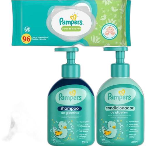 Kit Pampers Toalhas Lenço Umedecidos Glicerina Baby Bebê Bem vindo a a loja Flocus. É um prazer tê-lo a como nosso a cliente CONTEÚDO DO KIT: 1 Shampoo Pampers Glicerina - 200ml 1 Condicionador Pampers Glicerina - 200ml 1 pac. Lenço Umedecido Pampers Aroma de Aloe Vera 96 unidades Pampers Glicerina proporciona limpeza suave e segura do cabelo delicado de bebês e crianças. Ideal para todos os tipos de cabelo do bebê. O kit de Glicerina Pampers traz uma fórmula hipoalergênica pensada para o cuidado especial do cabelo delicado dos bebês e segura até para couro cabeludo sensível, trazendo maior suavidade e mantendo os fios macios. Além disso, proporciona uma lavagem suave e sem irritações nos olhos, evitando o desconforto das lágrimas durante o banho. Conta com pH ideal para o couro cabeludo do bebê e perfumação suave e segura para recém-nascidos. Não contém nenhum álcool etílico, fenoxietanol, parabenos e corantes. Fórmula biodegradável, vegana e livre de crueldade animal, com 97% de ingredientes naturais. Testado, aprovado e recomendado por pediatras e dermatologistas. Os Lenços Umedecidos Pampers com Cheirinho De Aloe Vera que foram criados para aquela limpeza prática do dia a dia, porque além de serem suaves e resistentes, hidratam e refrescam a pele do seu bebê sem causar irritações, e podem ser em bumbuns, mão e rosto. Seu bebê limpinho e sem pele irritada com Pampers BENEFÍCIOS: Limpeza completa da cabeça aos pés; Sem álcool, fenoxietanol, parabenos e corantes; Testado e aprovado por pediatras e dermatologistas; Seguro até para couro cabeludo sensível; Hipoalergênico e seguro desde os primeiros dias; 98% de ingredientes naturais; Fórmula vegana e livre de crueldade animal; Mais suavidade e mantém a pele do neném macia; Hipoalergênico; Sem lágrimas. MODO DE USAR: Shampoo: Coloque um pouco do shampoo em uma das mãos e espalhe pelo cabelinho molhado do bebê durante o banho. Massageie suavemente e enxágue em seguida com água. Condicionador: Coloque um pouco do condicionador ao longo dos fios e espalhe pelo cabelinho molhado do seu bebê durante o banho. Desembarace com facilidade deixando agir por alguns minutos. Enxágue bem em seguida com água. Lenço umedecido: Para abrir a embalagem, levantar a etiqueta no local indicado. Retire uma toalhinha umedecida e use nas áreas que deseja limpar. OBS: Não jogue no vaso. Jogue a toalhinha umedecida Utilizado no lixo. OBS 2:Manter a embalagem bem fechada para conservar a qualidade do produto. Orientações ao Consumidor: Agradecemos por escolher a Loja Flocus e por confiar em nós para cuidar da beleza dos seus cabelos. Em caso de dúvidas, favor enviar sua pergunta Flocus Marca: Não Informado Ean: 7735118895622