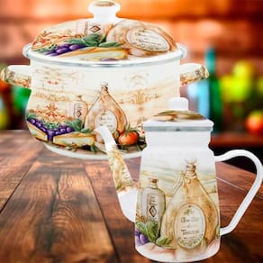 1 Panela Caçarola Esmaltada Italy De 3,6 Litros;1 Bule Esmaltado Italy De 1,2 Litros;