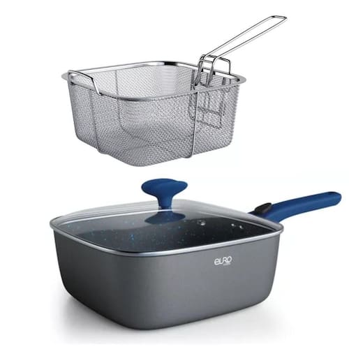 Revestimento de 5 camadas: Antiaderente Premium Livre de PFOA, Antidesgaste, Alumínio, Pintura Resistente, Base de Indução. Cabos removíveis com tecnologia Smart Click. Fácil de limpar. Saudável e seguro (livre de PFOA e metais pesados).Porta-fio