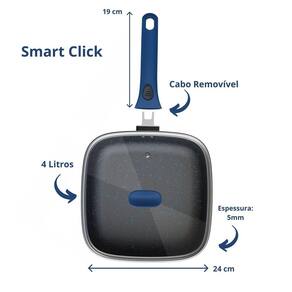 Conjunto de panela e fritadeira multifuncional com cabo removível e cesto em aço inox. Revestimento antiaderente premium livre de PFOA. Base de indução compatível com diversos tipos de fogões. Cabos removíveis com tecnologia Smart Click. Fácil de limpar.Porta-fio
