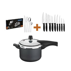 Kit - Panela De Pressão 4,5 Grafite + 1 Conjunto Facas 9pç + 1 Faqueiro Inox 24pç - Tramontina