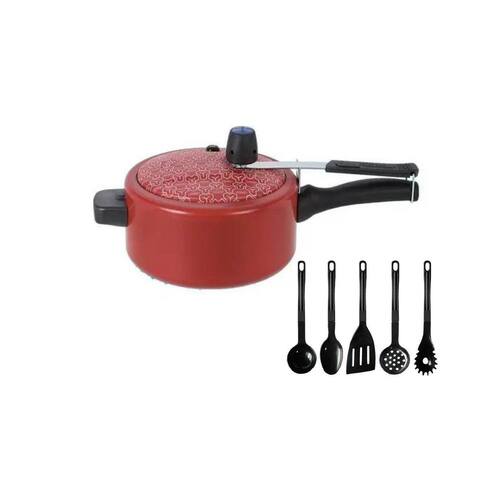 Kit Panela De Pressão Mas 5 Talheres Antiaderente. Kit Panela de Pressão Pressionella Baby Ramos 3L Antiad. Vermelho Mas 5 talheres Antiaderente Coloque cor em sua cozinha com uma Panela de pressão antiaderente cheia de estilo, e beleza. Com ela suas receitas terão, acima de tudo, muito mais sabor com um preparo prático e rápido.