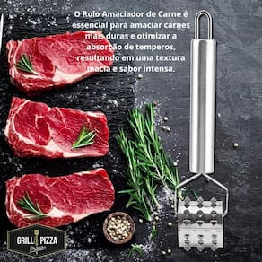 O Rolo Amaciador de Carne é essencial para amaciar carnes mais duras e otimizar a absorção de temperos, resultando em uma textura macia e sabor intensa. Ideal para realçar o sabor natural da carne, transforma suas receitas em verdadeiras experiências gastronômicas.