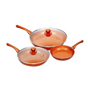 Design Elegante e Moderno: Com acabamento vibrante cor cobre/laranja conforme a imagem e design sofisticado, este conjunto adiciona um toque de beleza e modernidade à sua cozinha.